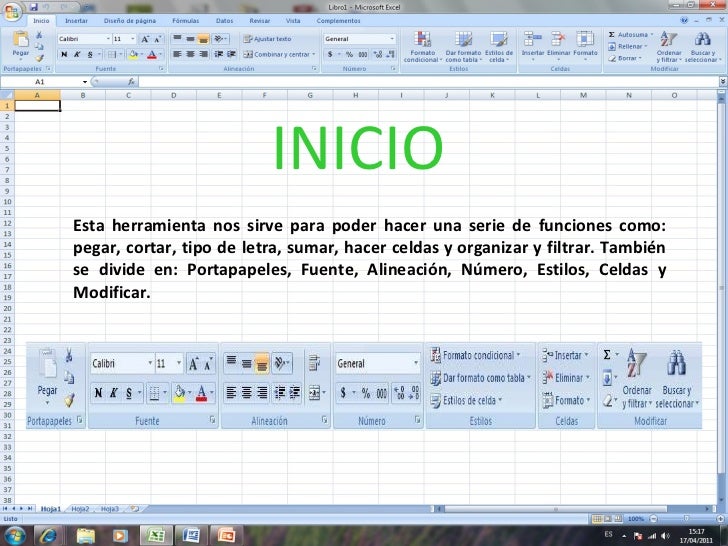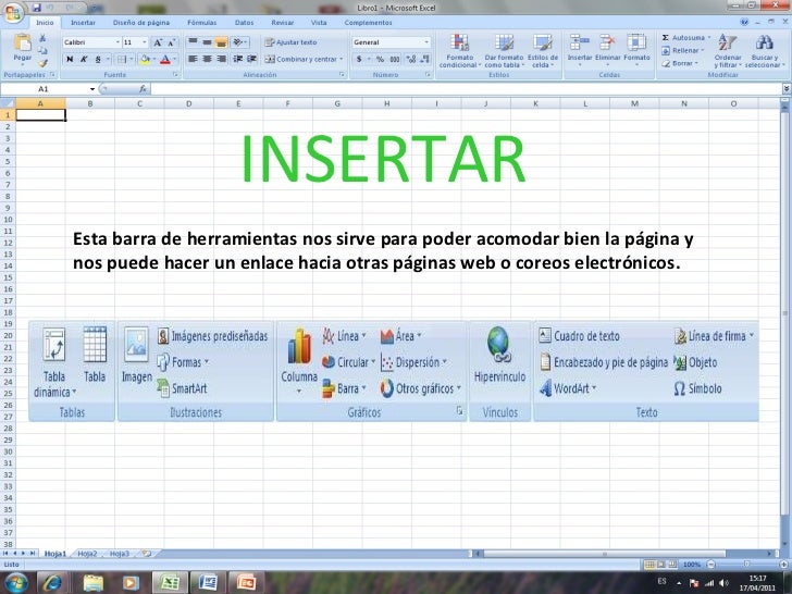 La cinta de opciones es el área horizontal, como una cinta, que se extiende en la parte superior del software Office cuando inicia Excel. Los comandos que necesita para trabajar se agrupan en fichas, como Inicio e Insertar. Puede hacer clic en las fichas para alternar el conjunto de comandos que se muestra.